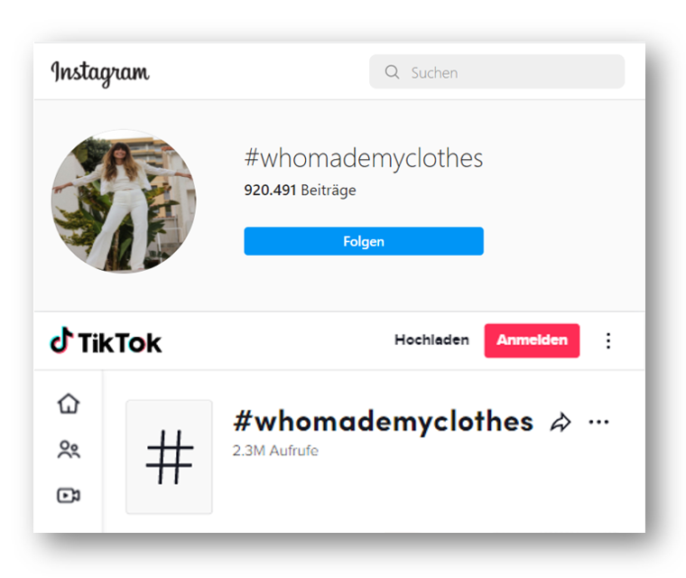 Screenshots: Beiträge zum Hashtag #whomademyclothes auf Instagram und TikTok